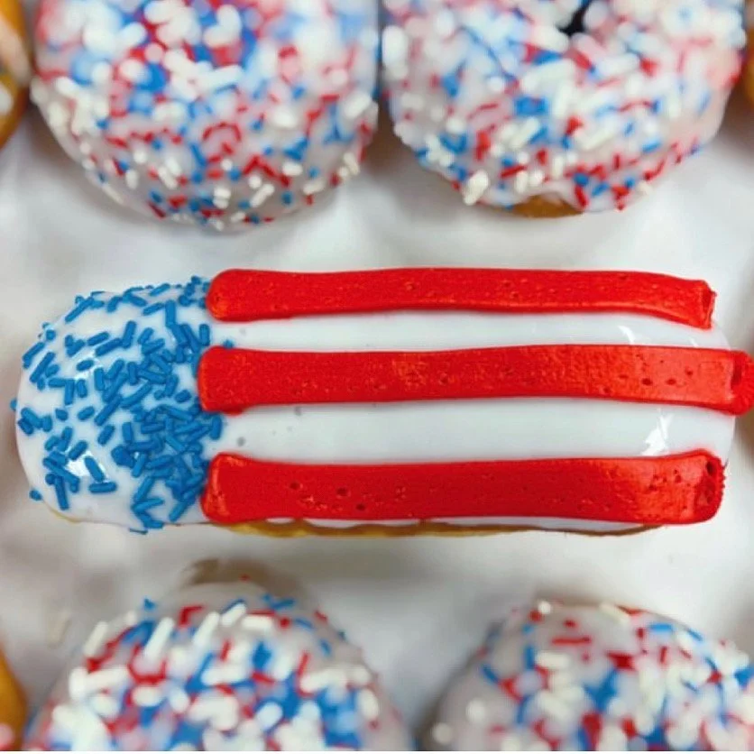 Despite the fact that we'll be closed on the Fourth of July, we'd be happy to put together a patriotic box of donuts, if you're still craving some Red, White and Blue the following weekend!